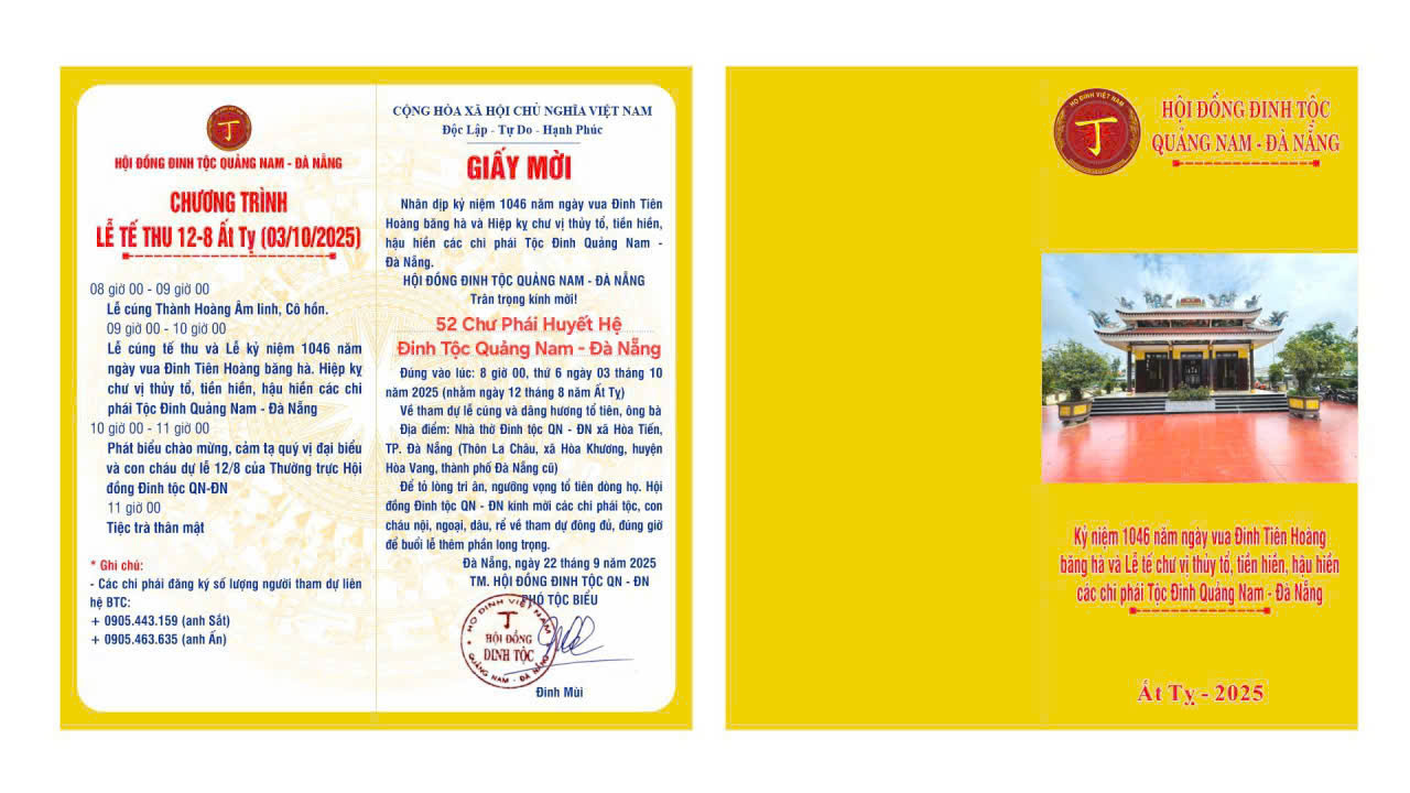 Nhân dịp kỷ niệm 1046 năm Vua Đinh Tiên Hoàng băng hà & hiệp kỵ chư vị thuỷ tổ,tiền hiền và liệt tổ Đinh Tộc Qn-Đn.Ngày 12/8 Âm Lịch Ất Tỵ(tức ngày 3/10/2025)