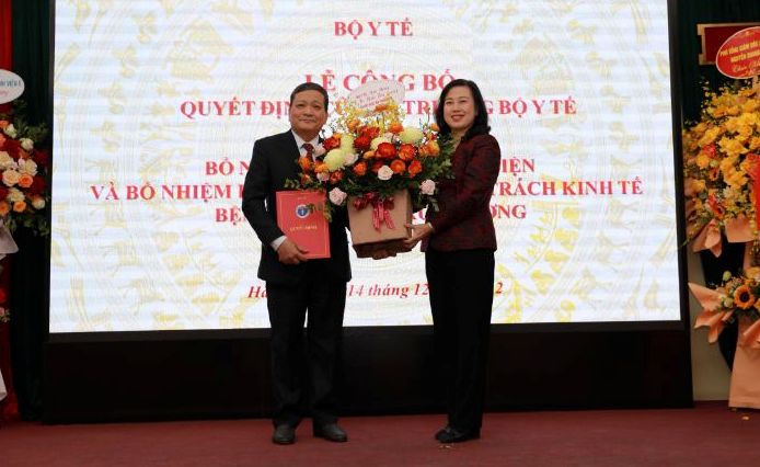 Bộ trưởng Bộ Y tế Đào Hồng Lan trao Quyết định và bổ nhiệm Giám đốc Bệnh viện Phổi Trung ương cho TS.BSCC. Đinh Văn Lượng.