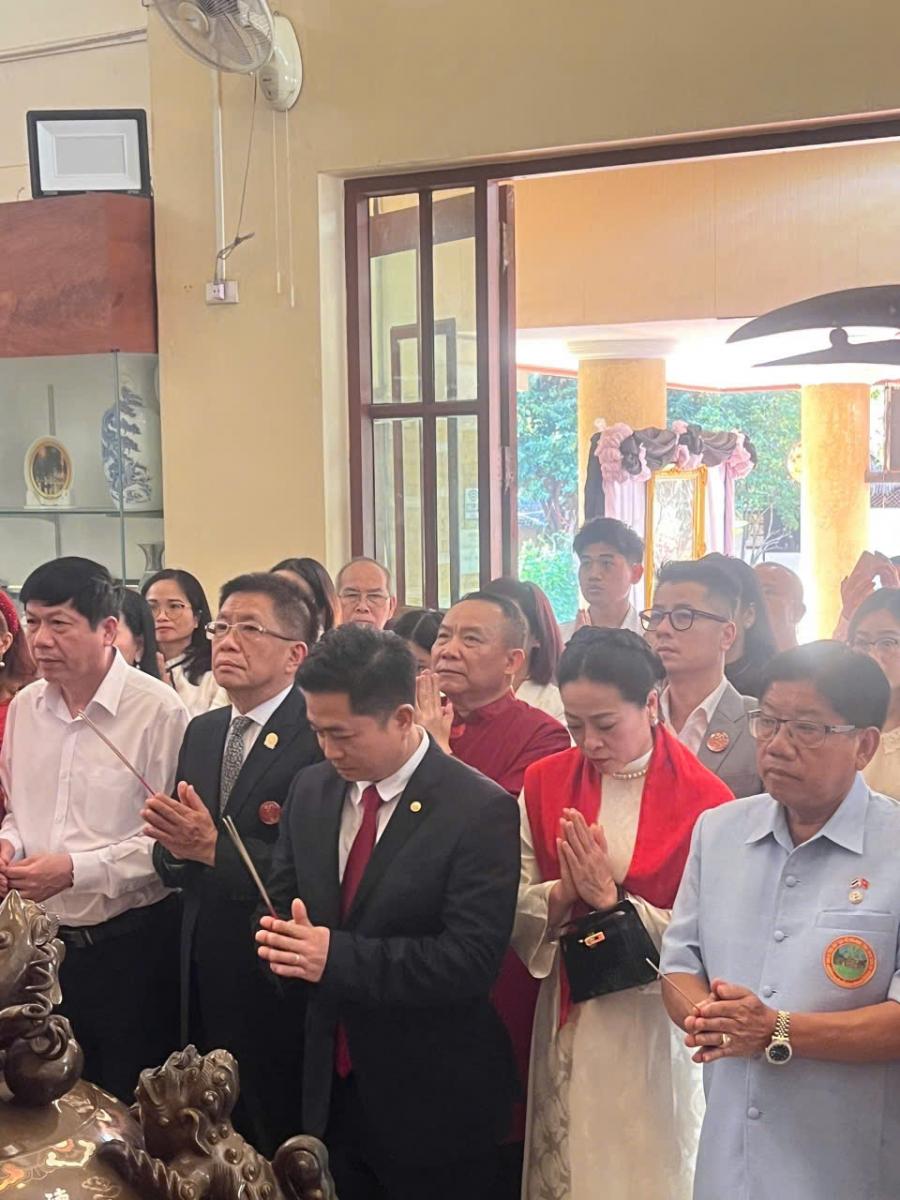 Ngày 12/02/2026, đoàn tiếp tục đến dâng hương tại Nhà tưởng niệm Chủ tịch Hồ Chí Minh – địa chỉ đỏ thiêng liêng của cộng đồng người Việt Nam tại Thái Lan, bày tỏ lòng thành kính và biết ơn sâu sắc đối với Người, đồng thời giáo dục truyền thống yêu nước cho các thế hệ con cháu xa quê.