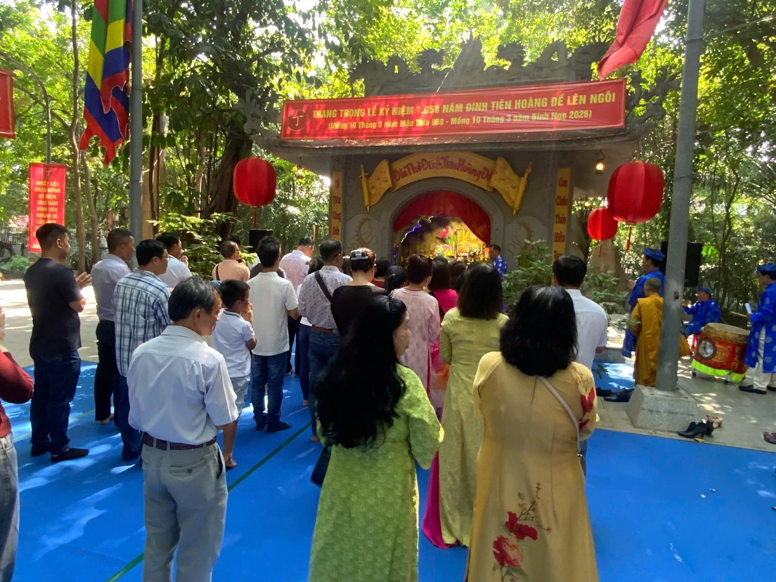 Tại đền thờ trong khuôn viên Công viên Suối Tiên, Ban Liên lạc họ Đinh TP.HCM cùng đông đảo con cháu họ Đinh đã tề tựu đông đủ, thành kính dâng hương, dâng lễ. Trong làn khói hương trầm lan tỏa, mọi người cùng nhau bày tỏ lòng biết ơn sâu sắc đối với Vua Đinh Tiên Hoàng – vị hoàng đế anh minh đã có công thống nhất giang sơn, mở nền chính thống cho dân tộc.