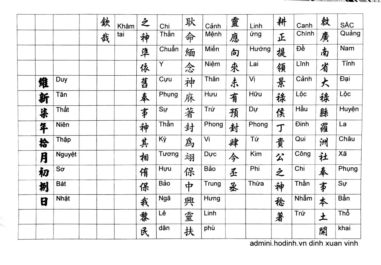 Chuẩn cho địa phương vẫn phụng thờ như cũ. Thần hãy phù hộ, che chở cho dân chúng được bình an, kính cẩn tuân theo.